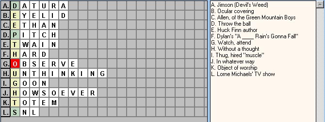 Just double-click on a row to search through the Dictionary. (I used "Moby Dictionary" broken into 26 files). Right-click after clicking on a row, and you can scan with conditions, specifying characters you want to get rid of early. |
